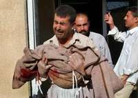 Saleh Ahmed carga el cuerpo de su hija Diar, de cuatro a� en las afueras del hospital de Kirkuk, muerta durante un intercambio de disparos FOTO Ap