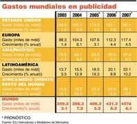 De acuerdo con la firma inglesa ZenithOptimedia, el gasto publicitario en el mundo llegará a un total de 406 mil millones de dólares en 2005, con un incremento anual de 5.2%. Esta cifra está mil mdd más arriba de lo que la compañía había pronosticado en julio.