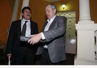Ricardo Monreal y Leonel Cota en la casa de campa�el candidato perredista FOTO Jes�llaseca