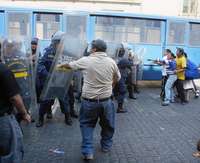Ambulantes que se negaban a ser retirados de calles del Centro Hist�o se enfrentaron ayer a granaderos FOTO Guillermo Sologuren