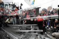 Hong Kong, 14 de diciembre. Altermundistas y elementos de seguridad protagonizaron fuertes enfrentamientos este miércoles en las calles de Hong Kong, aunque no se informó sobre heridos.