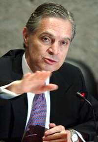 El titular de la Secretar�de Relaciones Exteriores, Luis Ernesto Derbez, en conferencia de prensa FOTO Marco Pel�