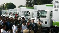 El jefe de Gobierno del Distrito Federal, Alejandro Encinas, puso en marcha ayer en Iztapalapa nuevos camiones de limpia, acondicionados para separar residuos org�cos e inorg�cos, en compa�del delegado V�or Hugo C�go FOTO La Jornada