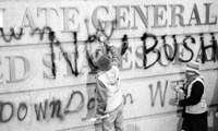 Coreanos efect�intas de repudio al presidente George W. Bush en el consulado de Estados Unidos en la ex colonia inglesa FOTO Ap