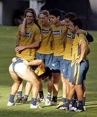 Reina el buen ambiente en el conjunto auriazul. El argentino Mart�Cardetti posa para los fot�fos FOTO Reuters