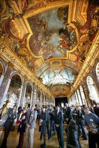 Los primeros invitados observan las pinturas restauradas de la Galer�de los Espejos, que ser�eabierta este martes. La primera parte del proceso se complet�spu�de 20 meses de trabajo; la segunda comenzar�n febrero de 2006 FOTO Reuters