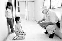 Un polic�estatal de Sonora platica con un par de ni�deportados que fueron separados de sus padres FOTO Marco Pel�