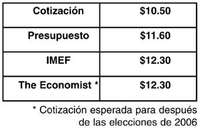 AYER se pudo comprar un dólar por 10 pesos 50 centavos en el aeropuerto de la ciudad de México. En diciembre del año 2000, cuando don Vicente tomó posesión, su valor era de 9 pesos 50 centavos. Sólo se ha devaluado un peso en cinco años; es una marca magnífica. La pregunta es: ¿es su valor real o estamos frente a un superpeso sobrevaluado? Y si está sobrevaluado, ¿cuál debería ser su cotización actual? Tenemos tres estimaciones que pueden servirnos de punto de referencia: el gobierno foxista calculó el presupuesto de 2005 tomando como base un dólar de 11.60 pesos. El Instituto Mexicano de Ejecutivos de Ventas estimó a principios de año que para los días que corren estaría en 12.30. Los expertos en monedas de la revista The Economist dicen que esa cotización -12.30- se alcanzará después de las elecciones presidenciales. Conclusión: el superpeso está sobrevaluado, pero el gobierno lo mantiene desproporcionadamente fuerte mediante transfusiones diarias de dólares que el Banco de México de Guillermo Ortiz aplica al mercado usando como jeringas a los bancos comerciales. ¿Qué nos depara el futuro? ¿Un ajuste después de las elecciones, o un poco después, y entonces el trago amargo tendrá que darlo el presidente que sigue?