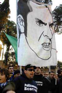 Seguidores del Lazio protestan frente a la federaci�taliana de futbol por la suspensi�e Paolo di Canio FOTO Ap