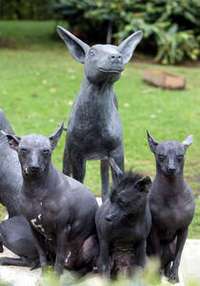 Algunos de los perros xoloitzcuintle, que pueden observarse en el Museo Dolores Olmedo, descansan frente a una escultura FOTO Yazm�Ortega Cort�