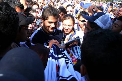 El chileno Navia fue asediado por aficionados luego de su primer entrenamiento con los Rayados FOTO Notimex