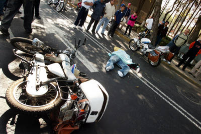 Un empleado del Servicio Postal Mexicano muri�as chocar en su motocicleta contra una camioneta, ayer en la calzada M�co-Tacuba FOTO Alfredo Dom�uez
