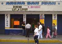Fachada de la arena San Juan, donde los viernes la Mataviejitas acudía a presenciar las funciones de lucha libre en compañía de sus hijos menores y un taxista apodado El Frijol