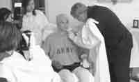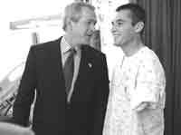 DESPACHO DE ANDREA Candrian (Keprtv) del 5 de enero: "El Comandante en Jefe homenajea a un graduado de la Escuela Secundaria de Kamiakin por las lesiones que sufrió cuando peleaba en Irak. En octubre, el transporte Humvee del sargento del Ejército Jerry Majetich, de 36 años, fue volado por una mina terrestre. Dos soldados murieron en el ataque, del que Majetich salió con quemaduras en todo el cuerpo y sin los dedos de la mano derecha. El día de año nuevo, en su cuarto de hospital en Houston, el sargento Majetich fue condecorado por el presidente Bush con el Corazón Púrpura. La policía de Pasco recaudó dinero para que Ben, hermano de Majetich y sargento policial de esa localidad, pudiera pagar el viaje para asistir a la ceremonia, acompañado por su mujer. Dijo que ésta había subido el ánimo a su familiar. Pensamos que el presidente sólo le entregaría la medalla y se iría, dijo Ben Majetich. En cambio, pasó 10 minutos con nosotros, nos habló de muchas cosas, de la familia, de los hermanos, de Jerry, un poco de política. Se espera que el proceso de recuperación tomará a Majetich al menos dos años. Luego, él espera regresar a la escuela y volverse maestro".