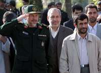 Foto de archivo del general Yahya Rahim Safavi (izquierda), quien denunció ayer que fuerzas británicas estacionadas en Irak proporcionan a agentes iraníes materiales para fabricar bombas que luego utilizan en ataques en el sur del país. A la derecha, el presidente Mahmud Ahmadinejad