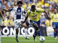 El brasileño Kléber Boas (derecha) estuvo muy activo y anotó dos goles, pero no impidió la derrota del América