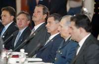 El presidente Vicente Fox, flanqueado por Miguel Angel Yunes, Eduardo Medina Mora, Carlos Abascal, Ricardo Clemente Vega y Daniel Francisco Cabeza de Vaca, durante la vigésima sesión del Consejo Nacional de Seguridad Pública, en el Campo Marte