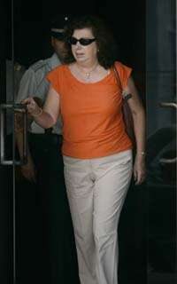 Lucia Pinochet, the eldest daughter of former dictator Augusto Pinochet, leaves the correctional officers school after a Chilean court granted her bail in Santiago, Chile, Monday, Jan. 30, 2006, ending her two-day arrest after returning home from the United States to face tax evasion and false passport charges. (AP Photo/Claudio Santana)