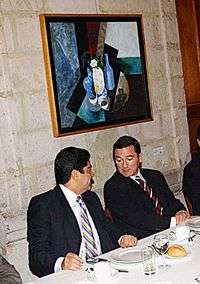 Ampliar la imagen Manuel Espino y Mariano Palacios, presidentes de PAN y PRI, respectivamente, durante la reunión que sostuvieron ayer con el secretario de Gobernación, Carlos Abascal Foto: Jesús Villaseca