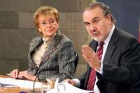 María Teresa Fernández de la Vega, vicepresidenta del gobierno español, y Pedro Solbes, ministro de Economía, informan de la resolución del consejo de ministros sobre la venta de Endesa