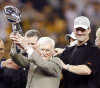 Detroit, Mich., 5 de febrero. Paul Tagliabue, comisionado de la NFL, felicitó a Dan Rooney, dueño y fundador de Acereros de Pittsburgh, campeones del 40 Súper Tazón y al momento de entregarle el trofeo Vince Lombardi dijo que este equipo igualaba lo hecho anteriormente por los Vaqueros de Dallas y 49's de San Francisco con cinco títulos.