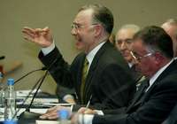 El ex titular de la PGR, Jorge Carpizo, y el ministro presidente Mariano Azuela, durante la inauguración del Congreso Internacional de Derecho Constitucional, efectuado en el Instituto de Investigaciones Jurídicas de la UNAM