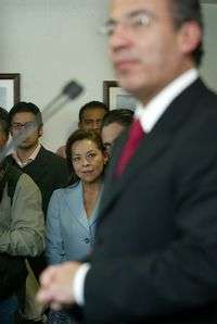 Josefina Vázquez Mota en la conferencia que el candidato panista Felipe Calderón ofreció en su casa de campaña