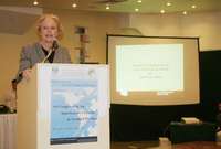 Asa Cristina Laurell, titular de Salud del Distrito Federal, durante su participación en el primer Congreso de las Américas en Ciencias de la Salud Pública, organizado por la Facultad de Estudios Superiores Zaragoza, de la UNAM. En la imagen superior de la derecha, el presidente Vicente Fox y el jefe de Gobierno capitalino, Alejandro Encinas, al entregar la afiliación 2.5 millones del Seguro Popular, el 10 de agosto de 2005