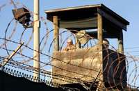 Vigilancia en la prisión de la base militar estadunidense en Guantánamo, Cuba, donde hay unos 500 detenidos sin cargos formales desde la invasión a Afganistán en 2001 luego del 11-S