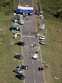 Aspecto del bloqueo en el puente de Gualeguaychú