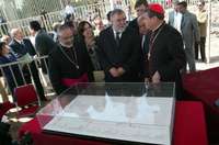 Entre reclamos y consignas, el cardenal Norberto Rivera y el jefe de Gobierno, Alejandro Encinas, pusieron la primera piedra del proyecto, que incluye ampliar el atrio de la Basílica