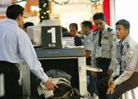 Elementos de seguridad revisan equipaje en las cabinas de rayos X en el AICM