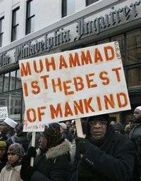Protesta fuera de las oficinas del diario Philadelphia Inquirer, que publicó las caricaturas de Mahoma, mientras musulmanes suizos rezan en desagravio frente al edificio de Parlamento en Berna