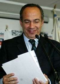Felipe Calderón durante la conferencia de ayer en su casa de campaña