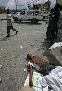 Testigos aseguraron a la Afp que miembros de la Misión de Estabilización de la ONU (Minustah) dispararon contra una muchedumbre cerca de la terminal aérea, pero el vocero de los cascos azules, David Wimhurst, negó que el fallecimiento de una persona sea responsabilidad de las fuerzas internacionales.