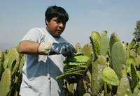 Productores de nopal del poblado de San Lorenzo Tlacoyucan, en la delegación Milpa Alta, vieron dañada la producción de tres meses por la helada que cayó el 7 de enero de 2006. Las imágenes corresponden a un recorrido de La Jornada por cultivos y el centro de acopio, el 7 de febrero
