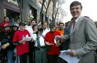 El candidato del PRD a la jefatura de Gobierno del Distrito Federal, Marcelo Ebrard Casaubón, se unió a la jornada de volanteo para promover el mitin del aspirante perredista a la Presidencia de la República, Andrés Manuel López Obrador, en el Zócalo capitalino, el próximo 26 de febrero.