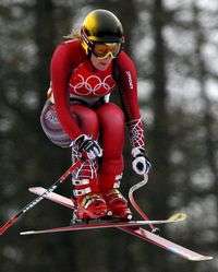 Michaela Dorfmeister, quien obtuvo un logro que se le había escapado durante su carrera; la medalla de oro en la prueba de descenso de esquí, que será su última conquista en la competencia, ya que tiene programado su retiro en marzo.