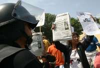 En el auditorio de la Universidad Tecnológica de México (Unitec), campus Cuitláhuac, el candidato presidencial del PAN, Felipe Calderón, recibió críticas de estudiantes preparatorianos y universitarios. Una joven se levantó cuando el abanderado panista exponía su plataforma. Portaba un cartel en el que se leía: "Cómplice del Fobaproa".