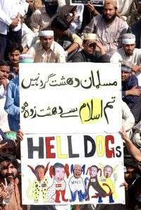 En Pakistán, donde desde principios de semana han muerto cinco personas durante manifestaciones anttioccidentales, decenas de miles de creyentes islámicos -alrededor de 20 mil, según las fuerzas de seguridad- que esgrimían palos y agitaban banderas protestaron contra la publicación en varios países europeos de las caricaturas satíricas del profeta Mahoma.