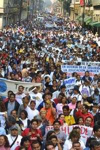 Decenas de miles de manifestantes de al menos 300 organizaciones magisteriales, sindicales, educativas y sociales emplazaron al gobierno del presidente Vicente Fox y a los integrantes del Congreso de la Unión a desistirse de su intento de llevar a cabo una reforma "regresiva" a la Ley del Instituto de Seguridad y Servicios Sociales de los Trabajadores del Estado (ISSSTE), con la advertencia de que, de persistir en su propósito, se promoverá una huelga nacional.