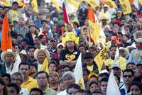Puebla, Pue., 17 de febrero. "Mi gober precioso, el pueblo está contigo" decía una enorme manta que apareció a mitad del contingente que hoy desfiló por el Zócalo de esta ciudad durante tres horas y media en lo que fue la manifestación convocada por las "fuerzas vivas" del PRI en respaldo al mandatario estatal, Mario Marín Torres.
