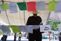 El principio fue el mismo que el del año pasado: engrapar textos de poetas y escritores conocidos y no tan conocidos en una plaza pública (tradición que viene de la Edad Media) para que los caminantes se toparan de frente con ellos y, con suerte, los leyeran y se animaran a decirlos en voz alta ante un micrófono.