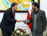 El presidente iraní Mahmud Ahmadinejad recibió en días pasados del ministro de Relaciones Exteriores de Cuba, Felipe Pérez Roque, un mensaje del presidente Fidel Castro en el cual le expresa solidaridad por su proyecto nuclear con fines pacíficos. El encuentro ocurrió en Teherán