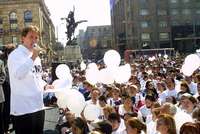 En un acto realizado en la explanada del Palacio de Bellas Artes, el candidato al Gobierno del Distrito Federal por el Partido Nueva Alianza (Panal), Alberto Cinta Martínez, dio el banderazo de salida a la ola blanca, que son las brigadas de jóvenes que promoverán su candidatura.