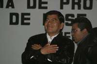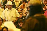 Mazatlán, Sin., 19 de febrero. Con grandes pancartas -una señalaba: "El pueblo de Dios está con usted", y en otra se leía "Y haré de ti una nación grande y te bendeciré y engrandeceré tu nombre"-, cientos de integrantes de la comunidad evangélica recibieron en el municipio de Escuinapa al candidato panista a la presidencia de la República, Felipe Calderón Hinojosa.