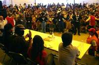 Zacatelco, Tlax., 19 de febrero. De antro para table dance a punto de encuentro de medios alternativos y banda conexa, El Dorado recibe desde ayer al personal que se sintió convocado a la otra campaña en su ingreso al estado que se considera oficialmente "cuna de la nación". Ayer sábado se congregaron aquí hasta mil 500 personas, aunque más de fijo un millar, del cual sólo una tercera parte no eran aún adherentes de la Sexta declaración de la Selva Lacandona. Arte y maña para ir calentando, músicos, mimos, malabaristas, MC's de hip hop,...