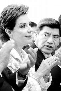 Ampliar la imagen El gobernador de Puebla, Mario Marín, en tiempos de calma, cuando, en compañía de Marta Sahagún, escuchó el informe de su esposa, Margarita García de Marín, directora del patronato del DIF estatal, el 2 de febrero pasado Foto: José Castañares