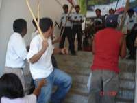 San Pedro Pochutla, Oax., 21 de febrero. Luego de golpear y desarmar a unos 20 policías, cerca de 150 habitantes de los municipios de San Miguel Figueroa, San Isidro Apango y Santa María Limón tomaron el palacio municipal en protesta por el incumplimiento en la realización de obra pública en sus comunidades.