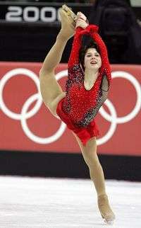 Traspié de la estadunidense Sasha Cohen durante su rutina
